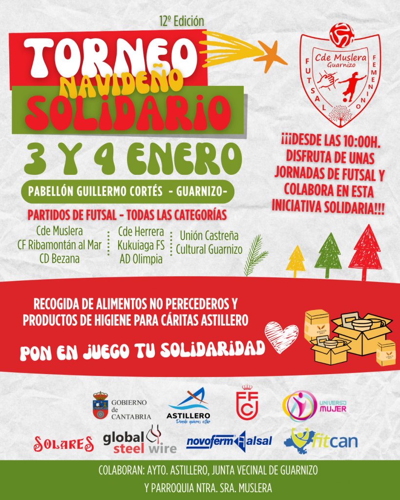 Este fin de semana 3 y 4 de enero de 2026, celebraremos la 12ª Edición de nuestro Torneo Solidario. Es un evento que organizamos con mucho cariño, en su origen fue de gran importancia para que el club pudiese subsistir y a partir de ahí, todos los que formamos parte de esta familia, hemos aportado nuestro granito de arena para ayudar a las personas con más necesidades de nuestro municipio.